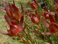 | King Protea |  | September - December | | Berzelia |  | Currently replanting | | Leucospermum Tango |  | October - November | | Leucadendron Safari Sunset |  | Due for replanting | | Cassinia Gold Rice Flower |  | Trial numbers November | | Brunia |  | Currently replanting new pink variety | | | | | | | | | | | | | | | | |